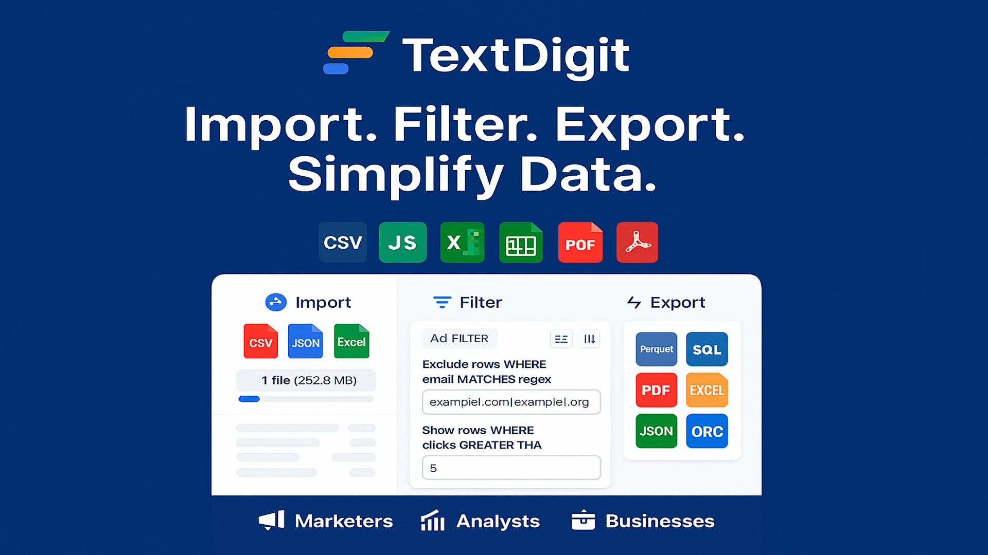 At TextDigit, we believe working with data should be simple, powerful, and stress-free. That’s why we created a platform that takes the chaos out of messy files and turns them into clean, usable insights — instantly.