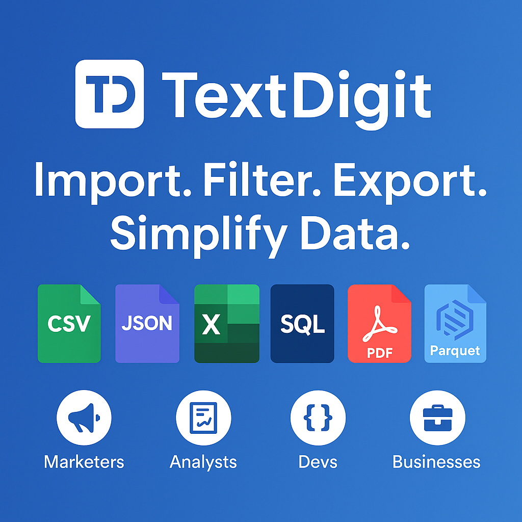 Getting started with data doesn’t have to be complicated. With TextDigit, you can import, filter, and export data in just a few clicks — no coding required.